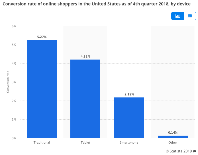 4. Mobile phone shoppers convert less than half as frequently as traditional shoppers. Tablet shoppers, in fact, convert more frequently than mobile phone users.