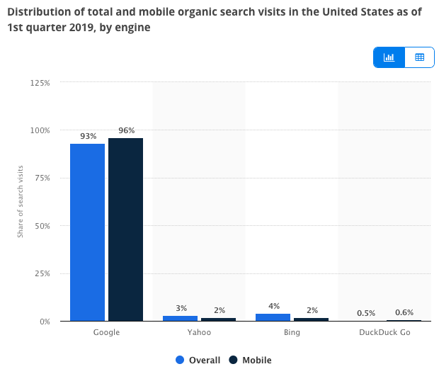 9. Google owns 96% of all mobile searches, and 93% of all desktop searches.